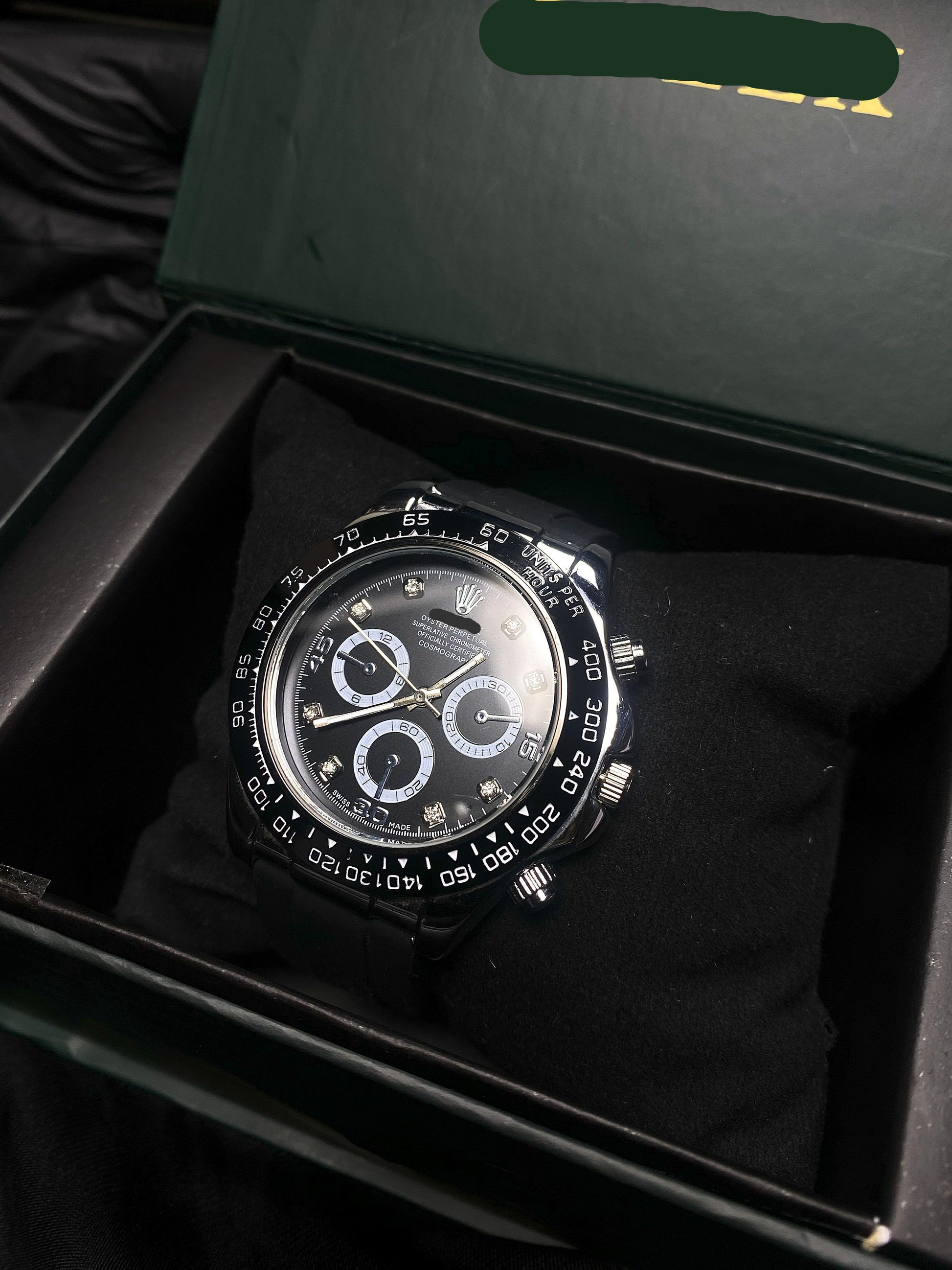 This masterpiece is designed for those who demand both luxury and performance. Featuring a luminous dial, fully functional chronographs, and a secure oyster-lock system, it blends timeless elegance with everyday practicality. The silicone straps ensure maximum comfort, while the heavy build reflects true premium craftsmanship. A perfect choice for those who appreciate class with functionality.