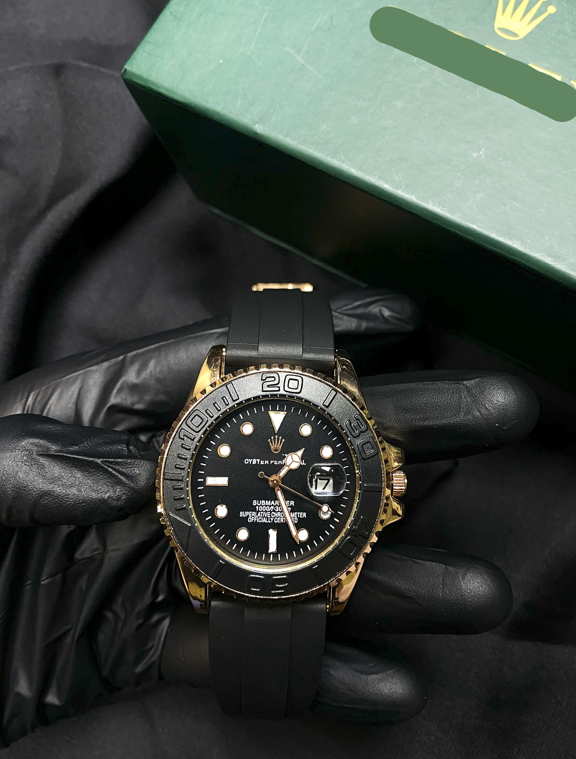 The RLX Yacht-Master Gold with premium silicone straps, exclusively from TimeNest, is the ultimate blend of luxury and comfort.